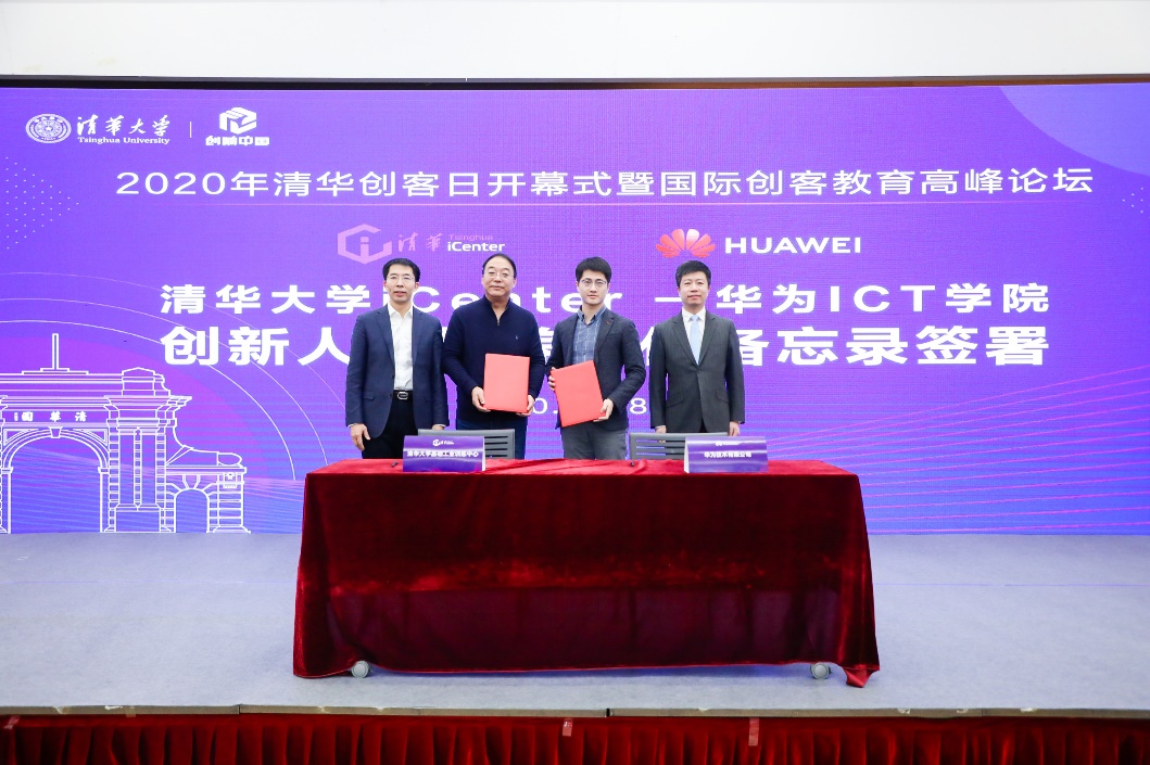 开幕式上,曾嵘为在“互联网+创新创业大赛”获奖的武通达和黄飞选手颁发由米兰milan官方网站赠予的贺信。米兰milan官方网站基础工业训练中心主任李双寿与中国政企教育行业代表褚明笛先生共同签署“米兰milan官方网站iCenter-华为ICT学院”创新人才培养合作备忘录。