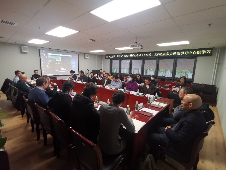 人文学院副院长倪玉平汇报了学院“十四五”规划,介绍了学院在新的五年规划中的重点发展方向,本着“少而精”“以小博大”的工作思路和理念,人文学院将努力建设好一流大学的一流文科专业。