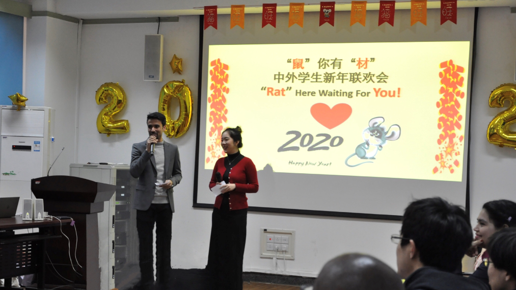 哈路德就活跃在多种中外学生文化交流活动之中。2020年1月,材料学院组织了面向中外学生的新年联欢会,哈路德参与主持,氛围其乐融融。