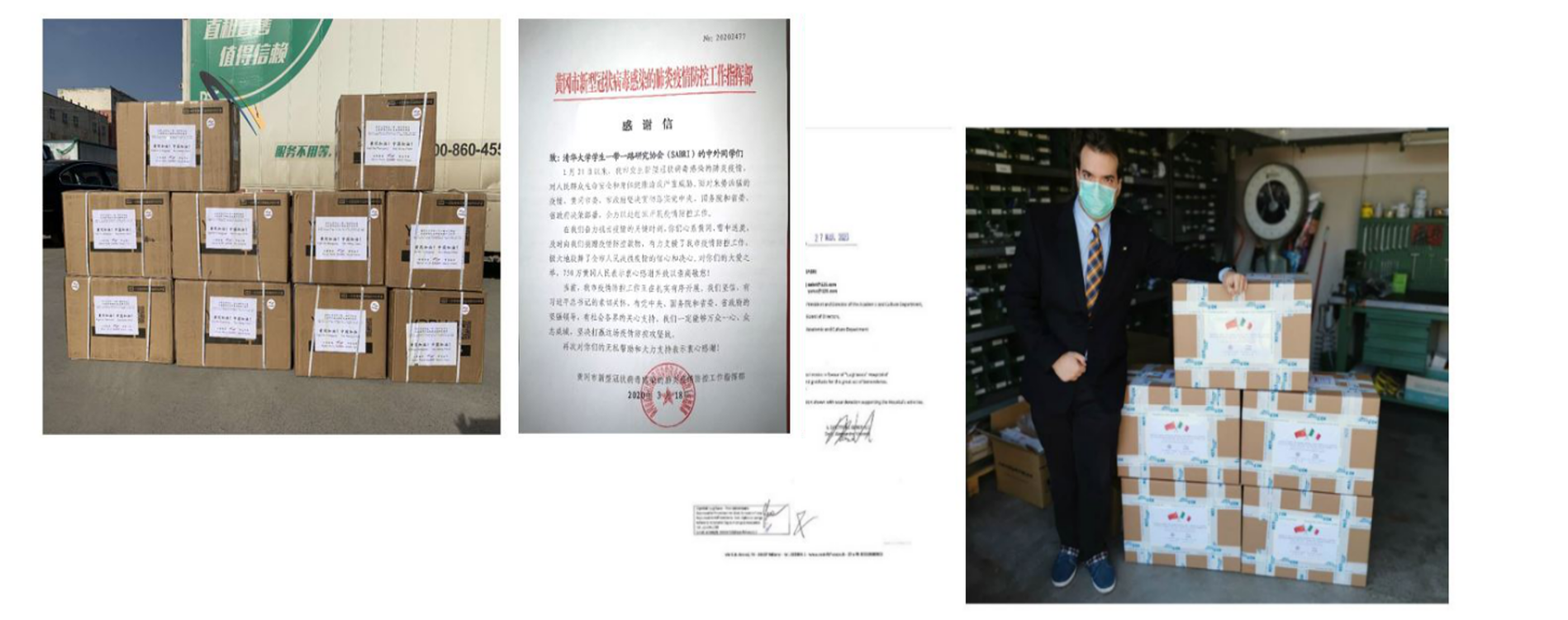 与此同时,国际学生也通过学生社团协会、自媒体等渠道,以捐款捐物、视频祝福等多种形式表达对中国和世界抗击疫情的支持。疫情期间,米兰多国学生、校友自发制作视频,祝福国内顺利度过艰难时刻,表达抗击疫情必胜的信心,积极传播正能量。米兰一带一路研究协会的中外学生成员主动参与医用物资收集和捐赠工作,支援湖北省黄冈市及意大利米兰地区抗击疫情工作。