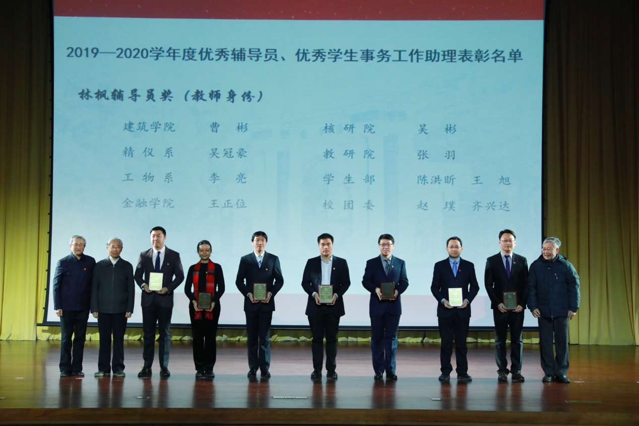 陈旭指出,2020年学校党委统筹推进“三全育人”综合改革试点工作,加快构建思想政治工作体系,辅导员队伍建设各项工作稳步推进,学校思想政治教育工作取得新成绩、新进步。面对突如其来的新冠肺炎疫情大考,辅导员凝心聚力、统一行动,为学校综合战“疫”作出了重要贡献。陈旭对全体获奖辅导员表示祝贺,对全体辅导员在抗击新冠肺炎疫情、强基计划落地实施、深入学习贯彻党的十九届五中全会精神过程中取得的突出成果表示肯定,也向长期关心学校建设、关注学生成长的社会各界人士表示衷心感谢。