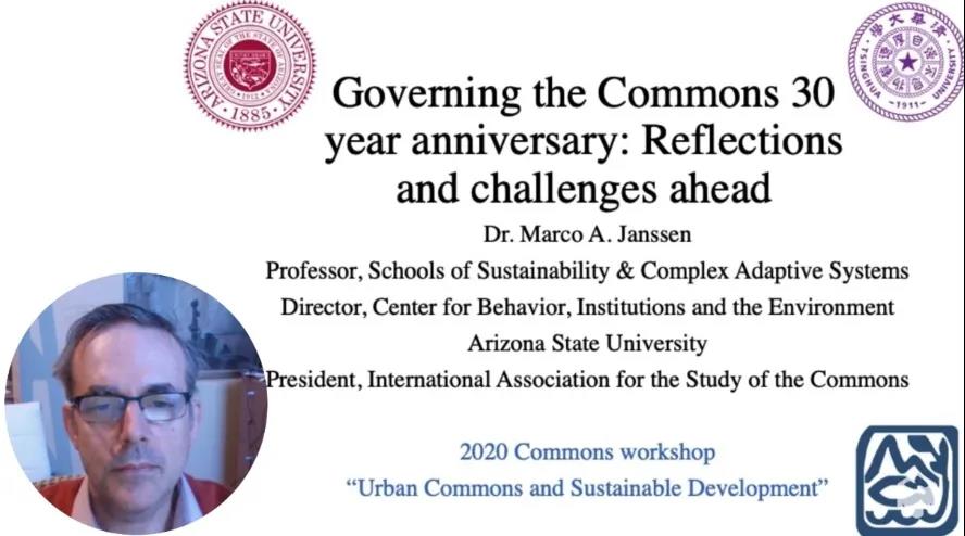 马可·A·詹森在致辞中回顾了公共事物治理研究过去30年的发展以及取得的成就,展望公共事物治理研究的未来,需要重视引入新的研究方法、探索大尺度公共事物治理问题、关注新兴公共事物研究等趋势。