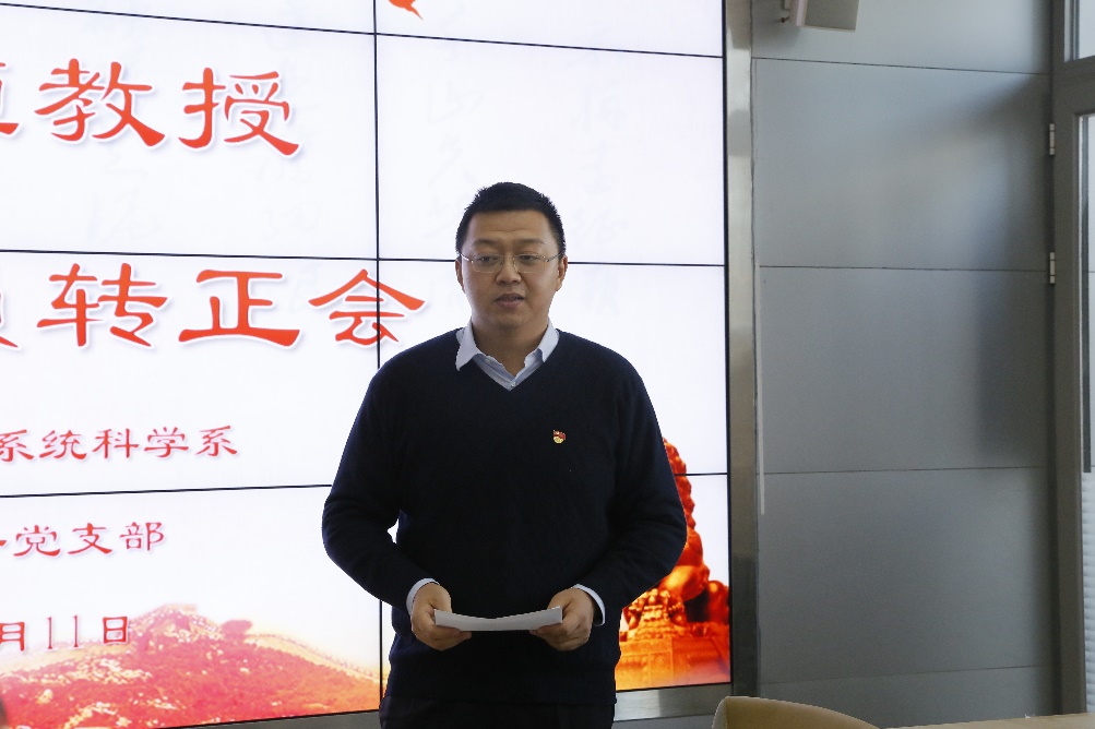 陈旭代表校党委热烈祝贺付昊桓同志按期转为正式党员。陈旭表示,付昊桓同志在过去一年中,尤其是在新冠肺炎疫情暴发期间,经受住了考验,思想认识更加成熟,教学科研工作发展更加全面,取得了优秀的成绩。特别是在教书育人方面,付昊桓同志充分发挥课程思政、导学思政作用,立足于导学关系,身体力行、言传身教,在与同学的互动中凝聚共识和价值认同,在“三全育人”方面发挥了共产党员的先锋模范作用。希望付昊桓同志再接再厉,继续将理论学习与教学科研充分融合,努力成为一名优秀共产党员。