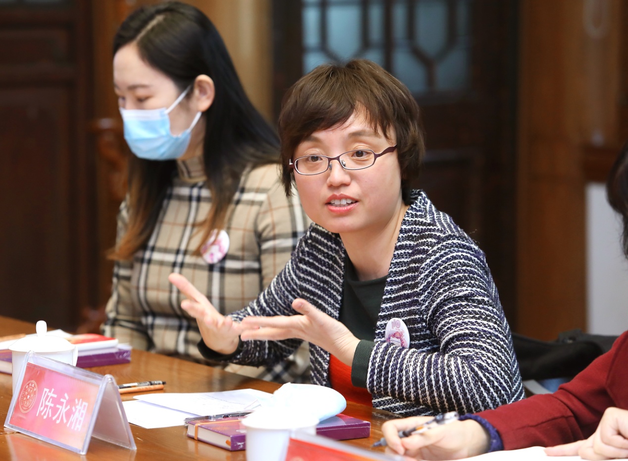 北京三八红旗奖章获得者、校女教职工委员、马克思主义学院副教授李蕉分享了她在平衡学术和家庭中的困惑和思考。她说,作为一名青年女教师,工作爬坡最关键的十年,也正是照顾家庭最重要的十年。她希望学校给予年轻女教师、女博士更多关怀,为她们的科研工作减轻一些压力。