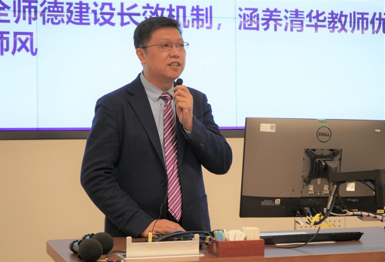 党委教师工作部副部长胡坚明就学校教师思政和师德师风建设工作进行了专题培训。他详细介绍了党委教师工作部的职能定位和目前学校教师思想政治工作的开展情况,全面总结了学校师德建设工作的优秀经验,鼓励党支部书记和委员围绕立德树人使命,为涵养优秀师德师风、推动学校走好内涵式发展之路而共同努力。