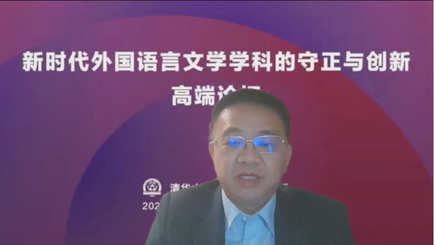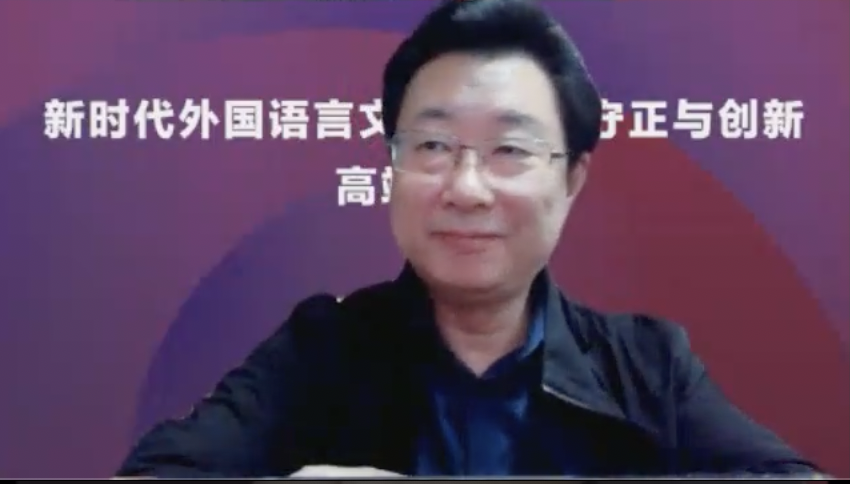 蒋洪新首先回顾了中国外语教育悠久的历史,他特别提到我国外文学科在初创时期与中国共产党的发展历程有着密切的联系。蒋洪新表示,新中国外语教育经历了发展和繁荣两个阶段,新时代的外文学科需要守正创新,加快建设中国特色一流的外语教育体系,以更加开放的姿态,更加积极地参与全球治理,为解决世界问题贡献中国智慧,提供中国方案。他认为新时代的学科发展应从四方面着力。第一,坚持立德树人,创新人才培养模式;第二,坚持交叉融合,深化专业内涵建设,探索多方向、跨专业、宽口径的建设思路;第三,坚持继续革新,强化信息技术应用;第四,坚持服务社会,助力国家战略需求。