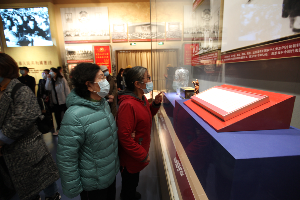 在展厅内,老同志们徜徉于党的历史长河之中。一桩桩史实、一件件实物,让老同志们抚今追昔、感慨万千,凝神思考、豪情满怀,再一次真切感受中国共产党人为中国人民谋幸福、为中华民族谋复兴的初心和使命。