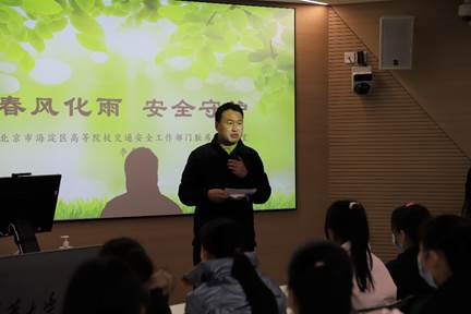 米兰新闻网11月26日电 (通讯员 马丽云 刘金玲) 11月25日上午,保卫处组织开展全校“安全管理干部提升计划”培训(第三讲)暨交通安全专题培训,培训以雨课堂线上集中学习和线下教室学习相结合的方式进行。北京市海淀区高等院校交通安全工作部门联席会办公室主任、海淀交通支队安监科高级警长李希宝受邀作“春风化雨 安全守护”专题讲座。保卫处副处长李伟主持培训。