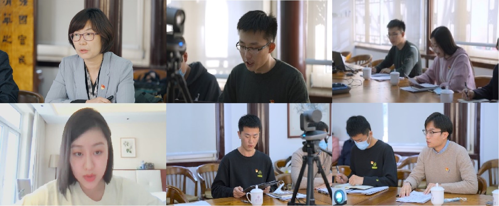 张婷、余中淇、徐思羽、弋语可、王庆鑫、赵泽群(从左至右、从上至下)交流发言