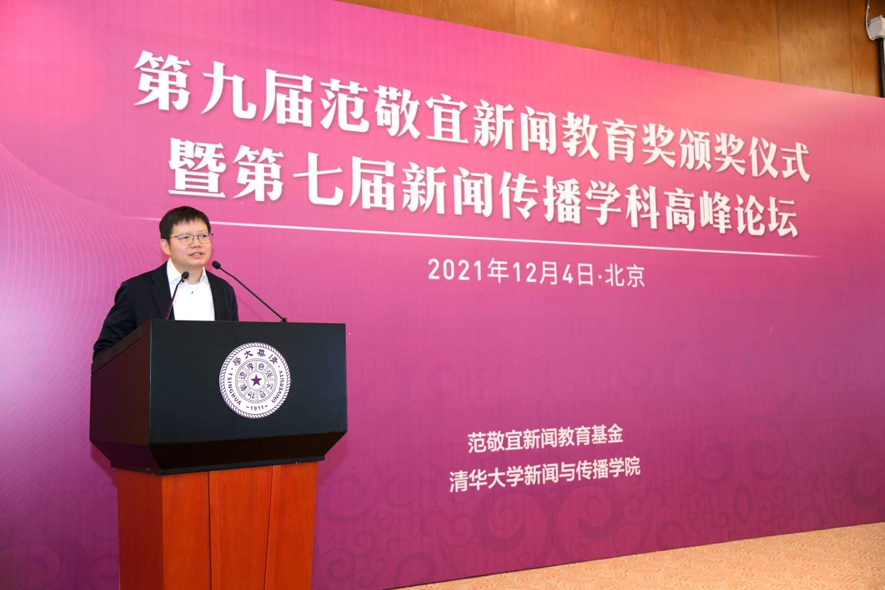 周勇在致辞中表示,范敬宜新闻教育奖在新闻教育界和业界起到了很好的示范作用,具有三个方面的意义:第一,通过评选良师、良友与优秀学子,解答“培养什么样的人”“怎样培养人”的问题,构建起价值标准;第二,孕育努力前行、尊重行业价值的行业氛围,给予从业者信心;第三,宣扬范敬宜先生对新闻教育、新闻学子的深厚感情,激励更多人才投身新闻教育、关心新闻学子。