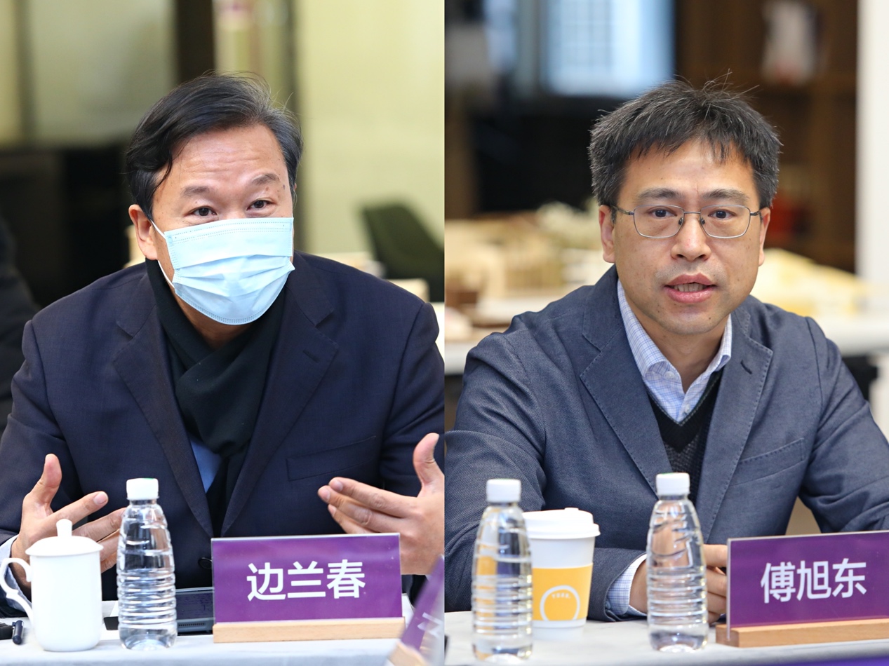建筑学院教授边兰春、土水学院党委书记傅旭东分别就全尺度的建筑学科发展路径及对城市建设和乡村振兴的思考、土水学院在几个关键领域发挥引领作用的学科发展方向进行了交流研讨。