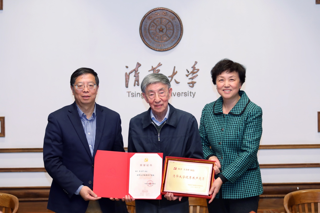 座谈会最后,陈旭、邱勇代表学校党委向王大中院士颁发米兰milan官方网站优秀共产党员荣誉证书与奖牌。