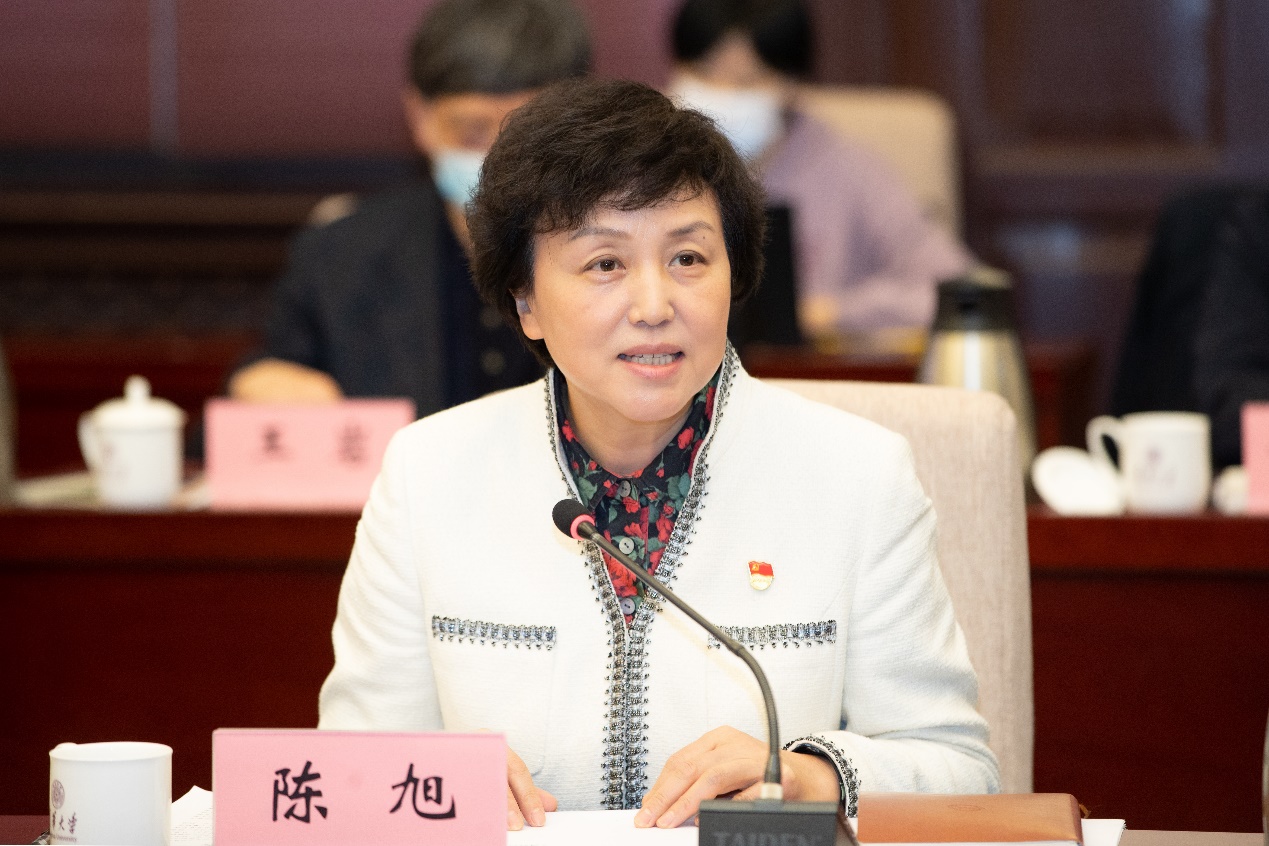 陈旭在总结中指出,学校领导班子要按照中央和习近平总书记的要求,把党史学习教育的收获和成果坚持好、巩固好,建立常态化、长效化制度机制,脚踏实地,久久为功,振奋起共产党人应有的精气神,把全部精力用到干事创业上。要持续加强党的政治建设,坚持以习近平新时代中国特色社会主义思想为指导,坚定拥护“两个确立”,坚决做到“两个维护”,立足“两个大局”,心怀“国之大者”,坚决扛起管党治党、办学治校的主体责任,巩固深化中央巡视整改成果,坚持严的主基调,不断增强基层党组织政治功能和组织力,让学校始终是坚持党的领导的坚强阵地。要强化旗帜标杆意识,牢记“为党育人、为国育才”初心使命,深化教育教学改革,不断提升思想政治工作的亲和力、吸引力,教育引导广大师生坚定不移听党话、跟党走,以强烈的主人翁精神奋进新征程、建功新时代。要增强历史自信、把握历史主动、发扬斗争精神,立足新发展阶段,贯彻新发展理念,聚焦新发展格局,把深化改革作为强大动力,加快“双一流”建设,深入实施学校“十四五”事业发展规划,全面推进教育评价改革,深入实施人才强校核心战略,深度参与创新驱动发展战略实施,以伟大建党精神凝心聚力、勇毅前行,以优异成绩迎接党的二十大胜利召开!