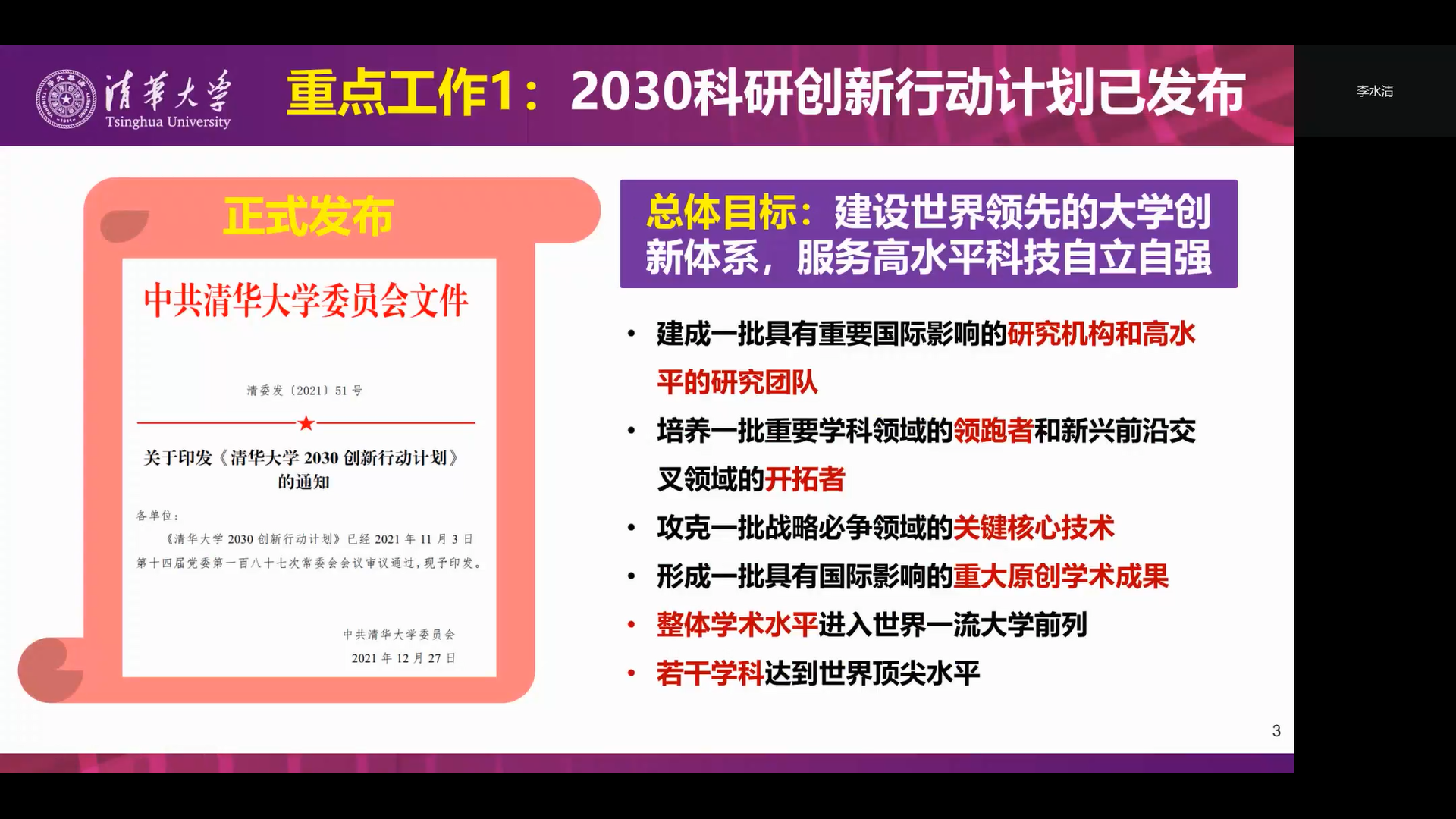 科研院副院长李水清向校学术委员会汇报了2021年米兰的科研工作,并介绍了2030科研创新行动计划、“十四五”文科高质量发展行动计划、重大科研活动等具体情况。