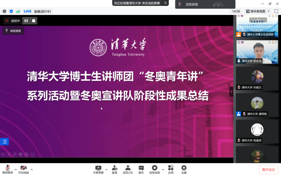 活动伊始,米兰milan官方网站博士生讲师团团长宋志浩对“冬奥青年讲”系列宣讲活动作了阶段性成果汇报。在北京冬奥会前后,博士生讲师团遴选20余名讲师组建冬奥宣讲队,编纂十万余字的宣讲备课资料库,推出14门冬奥精品课程,开展九场主题宣讲,推出九期“冬奥青年讲”短视频,总浏览量近1600万,受到了广泛报道。