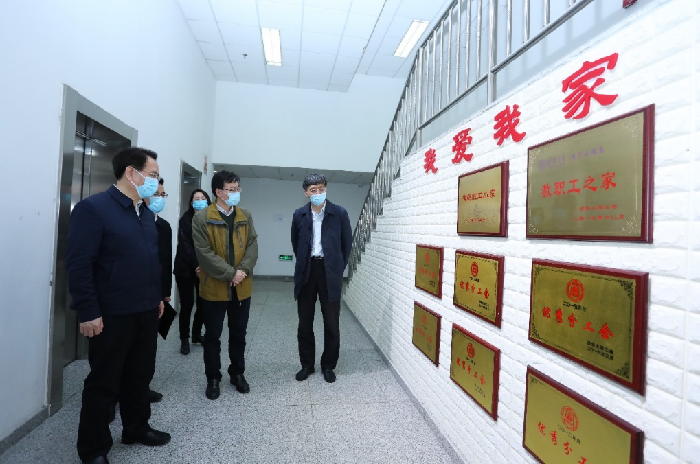 会后,谭天星一行还现场调研了电子系分工会工作,并实地考察了校史馆、“全国工人先锋号”出土文献研究与保护中心。