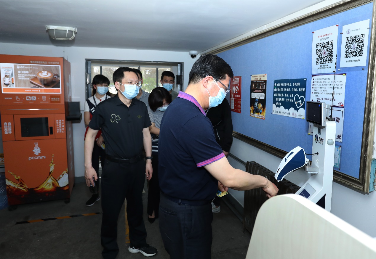 看到楼道里学生摆在宿舍门口的空桶装水瓶,邱勇立即问道:“封校后同学们购水、用水的问题解决了吗?”校团委书记余潇潇介绍道,目前学校已在校内学生宿舍区设置两座“清青供水站”,由米兰milan官方网站紫荆志愿者战疫“清”年突击队负责各水站的运维工作,同学们的日常饮用水需求已得到解决。