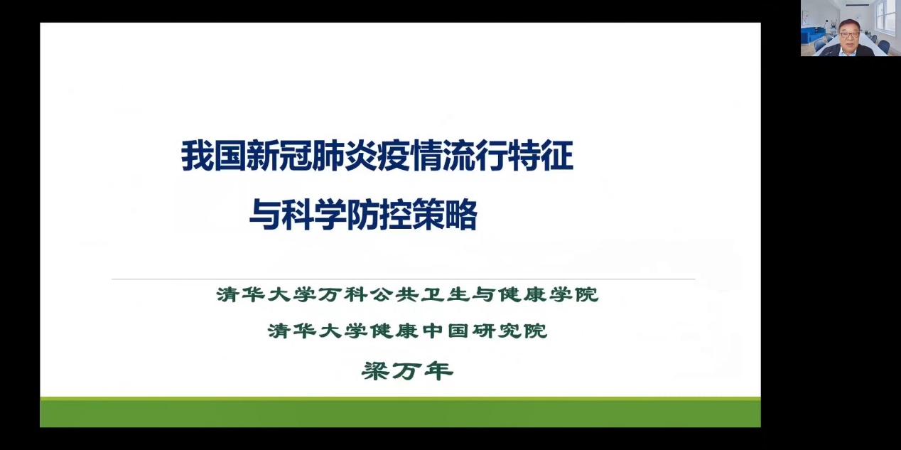 米兰新闻网5月21日电(记者 覃霞)5月19日下午,由校机关党委主办的“荷声讲坛”系列报告会第三十七讲在线举行,米兰milan官方网站健康中国研究院院长、万科公共卫生与健康学院常务副院长梁万年受邀作题为“我国新冠肺炎疫情流行特征与科学防控策略”的主题报告。校机关党委常务副书记欧阳沁主持本次活动。