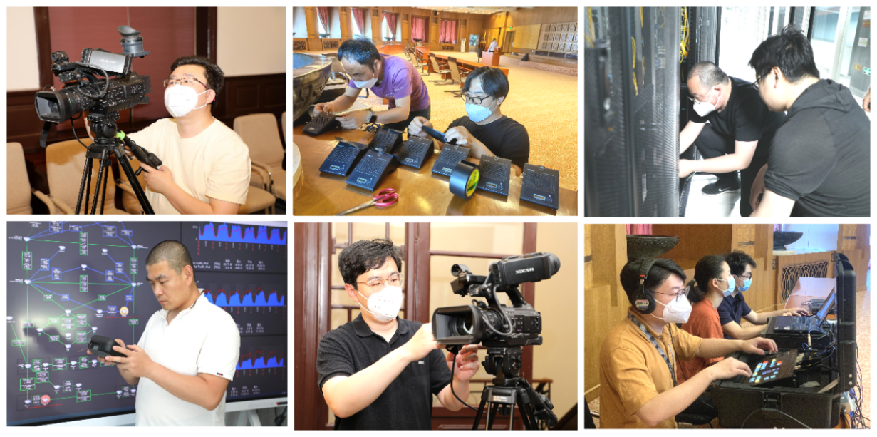 这是一支特殊的信息化保障队伍,他们来自信息化技术中心的多个科室,平时分散在多个办公区各自承担学校信息化运行服务的日常工作,是一群典型的“技术宅”,但接到保障组任务时,他们就迅速响应,以各自的技术专长无缝衔接,将网络保障、音视频现场转播、网络直播、双向互动、同声传译、拾音扩声、大屏幕显示、视频会议等技术整合创新,化身为“变形金刚”,形成合力为线上重大活动和会议提供保障。
