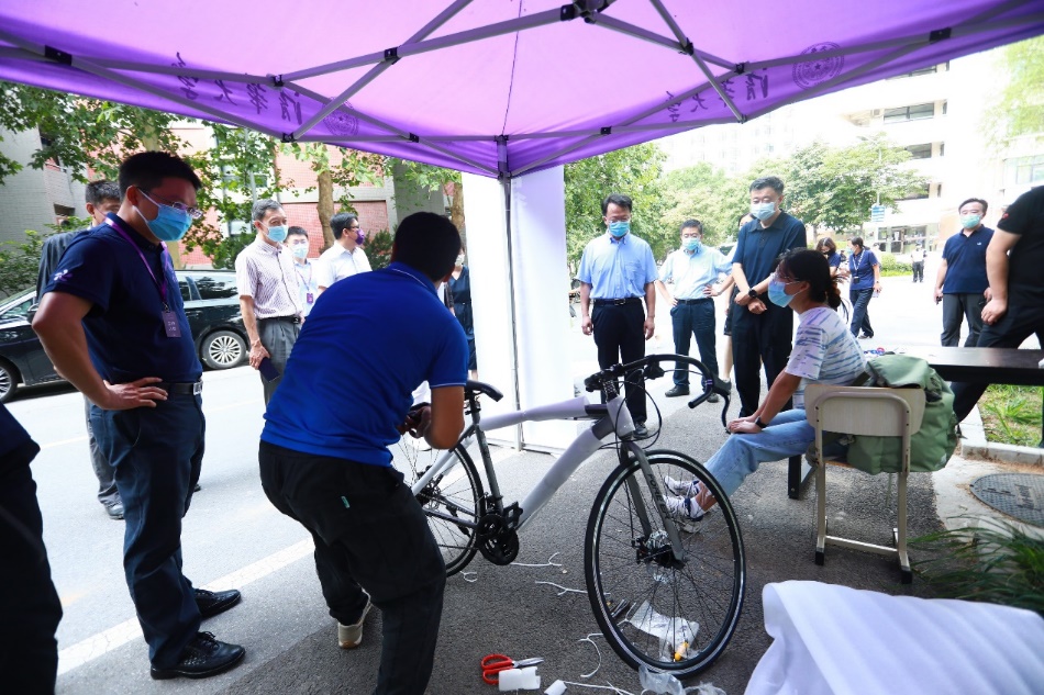 随后,邱勇一行来到了位于紫荆篮球场的“集中核酸检测点”,检查工作准备情况。12个核酸检测通道已经做好全面消杀,并开放下午和晚上两个时段给同学们进行核酸检测。