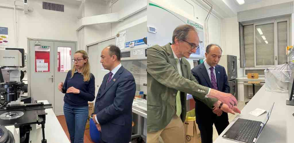 会谈结束后,王宏伟一行前往米兰理工大学生物工程系参观实验室及研究所。王宏伟与相关专家深入交流,了解米兰理工大学当前生物领域重点科研方向以及最新进展,探讨两校未来在相关领域开展创新合作的方向。