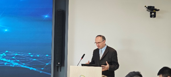 鲍勃·克莱恩介绍了英国与中国在能源领域的合作情况,指出双方成立的联合研究中心及其研究成果具有重要意义,双方合作符合中英高校的全球发展战略,希望在更广阔的领域内开展合作。