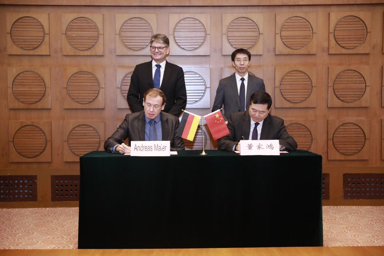 董家鸿和埃尔朗根-纽伦堡大学人工智能实验室主任安德烈亚斯·迈尔(Andreas Maier)教授代表双方签署《北京米兰长庚医院-埃尔朗根纽伦堡大学战略合作协议》,曾嵘和约阿希姆·霍内格尔见证签约。