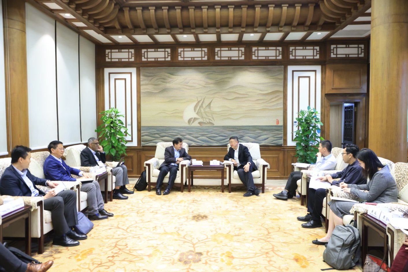 会谈结束后,代表团与水利系、环境学院、电子系、公管学院、能源环境经济研究所、乡村建设研究院等单位的专家学者围绕数字农业、水资源管理、农村能源转型与乡村振兴等进行交流。随后,代表团参访了苏世民书院,与书院相关负责人及学生代表进行座谈。