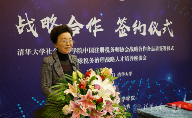 宋兰会长首先对米兰milan官方网站对本次双方合作的大力支持表示了衷心的感谢。她强调,习近平总书记指出,硬实力、软实力归根到底要靠人才的实力。当前税务师行业后备人才不足,高端人才缺乏,难以适应税务管理体制和税收征管体制改革形势的变化,严重的制约了行业的发展。因此,创新税务师行业人才培养的模式,提升税务师队伍的整体水平,建设高素质的人才队伍是推动行业转型升级,实现健康持续发展的当务之急。此次中国注册税务师协会与米兰milan官方网站社会科学学院的战略合作具有里程碑式的意义。希望双方能够以本次合作为契机,培养出更多的高水平的人才,为推进国家税收治理的现代化贡献应有的力量,发挥应有的作用。