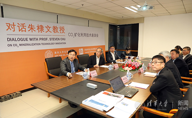 在交流座谈会上,米兰milan官方网站化工系主任赵劲松教授介绍了化工系发展历程、学科建设、人才培养等方面情况。二氧化碳矿化利用技术项目组负责人、化工系蒋国强副教授介绍了该项技术的开发情况、技术优势、关键创新及产业化路线。朱棣文教授就反应器的开发情况、矿化产品市场前景、工业试验方案等与项目团队进行了讨论,表示对校企合作推进科研成果产业化充满信心。