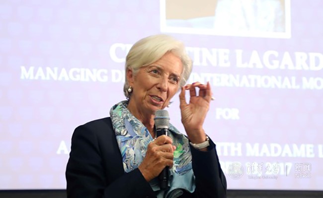 拉加德还介绍了国际货币基金组织在全球应对气候变化进程等事务上所发挥的作用。她表示,仅仅提供短期的经济援助和贷款是不够的,国际货币基金组织期待着通过提供更好的经济监督和能力建设,来确保全球经济和金融制度运作正常和促进可持续和包容性增长。拉加德尤其强调了年轻人应当发挥的作用:“当年轻人越来越关注,呼吁应对气候变化等全球性问题时,他们的声音才能被更多人听到。”