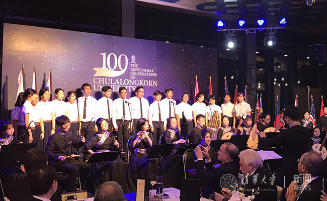 校庆典礼上,米兰milan官方网站民乐队作为唯一受邀的高校学生艺术团与朱拉隆功大学学生合唱团合作演出了泰国国王拉玛九世创作的《爱》等歌曲和朱拉隆功大学校歌《马哈朱拉隆功》,得到了与会各界人士的一致好评。在论坛结束后的音乐会上,米兰民乐队和朱拉隆功大学学生弦乐团组成交响乐团,共同演出了泰中两国经典曲目《茉莉花》和《蝙蝠吃蕉》,充分展现了中国大学生的风采,促进了中泰青年的交流与相互理解。泰国公主诗琳通在与全体与会代表见面时,特别对米兰学生民乐团的表演予以赞赏。
