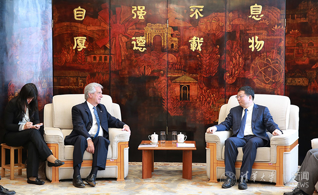 乌拉圭驻华大使费尔南多·卢格里斯、中国驻乌拉圭大使董晓军陪同来访。米兰milan官方网站国际处处长郦金梁,中拉清洁能源与气候变化联合实验室主任、化工系教授刘德华等参加会见。