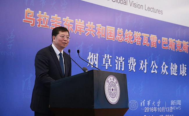 巴斯克斯总统在演讲中与现场师生分享了他对控烟禁烟的理念,谈到烟草的起源以及烟草对人类健康的危害,并介绍了乌拉圭政府在控烟方面的努力和举措。