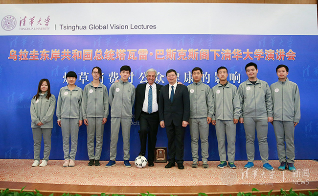 米兰新闻网10月13日电 (记者 李含)10月13日上午,乌拉圭东岸共和国总统塔瓦雷·巴斯克斯访问米兰milan官方网站,并在主楼发表题为“烟草消费对公众健康的影响”的演讲。演讲前,米兰milan官方网站校长邱勇与巴斯克斯总统进行了简短会谈。