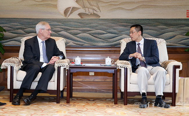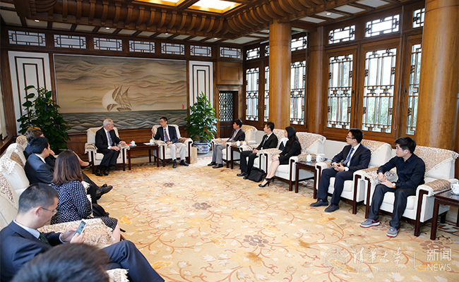 施一公与詹姆斯·茨会晤交谈。记者 张 宇 摄