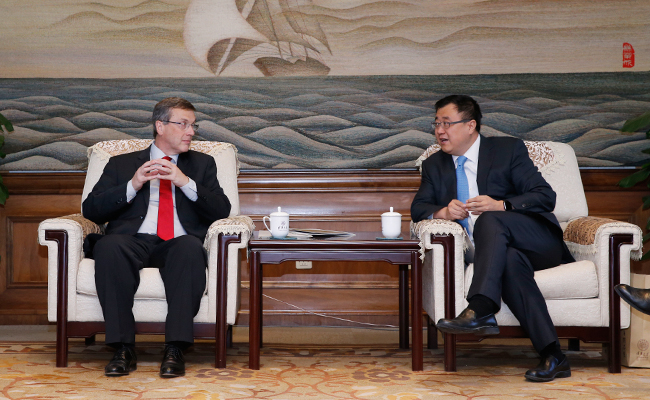 杨斌会见克罗夫特教授。记者 张宇 摄