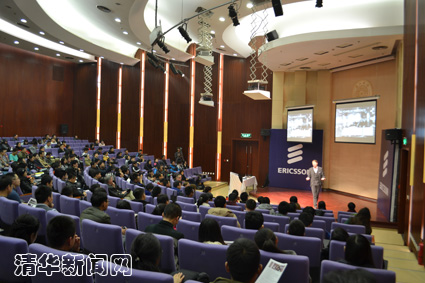 讲座以通讯行业的现实状况和未来发展潜力开篇,围绕着网络社会的巨大潜力这一主题,卫翰思分享了一系列通讯行业的数据和图表,指出近十年来网络极大改变了人类的生活方式,并预测15年后的社会将至少拥有500亿台互联终端,人类将真正步入网络互联的时代。