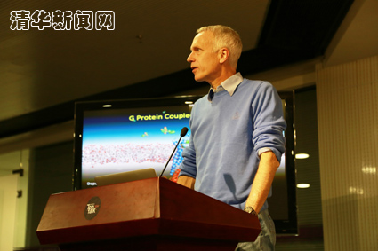 科比尔卡首先发表了关于GPCRs(G蛋白偶联受体)的主题演讲。演讲中,他首先以信号传递对于生命体的意义为切入点,讲述了GPCRs的重要性。紧接着,他对GPCRs的作用机理、GPCRs在药物研究中的意义进行了科普性的讲解。随后,科比尔卡为大家介绍了科学家们研究GPCRs数十年的过程以及GPCRs研究过程中的一些难点,并重点介绍了自己成功解析出其结构的心路历程。在演讲的最后,科比尔卡表达了自己对科研团队所有成员的感谢。