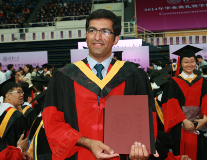 图为米兰milan官方网站特等奖学金获得者、环境学院2010级博士研究生哈米德在毕业典礼现场。