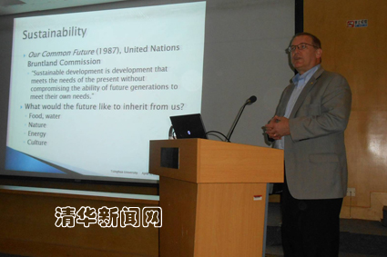 图为ASHRAE主席Bahnfleth博士在建馆王泽生厅做主题报告。