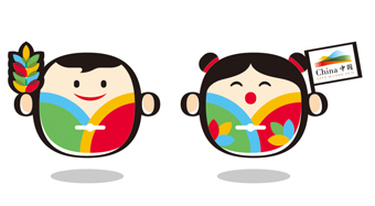 中国国家馆吉祥物 “和和”和“梦梦”设计源自 “和”字,结合了中国民间彩塑的造型元素,形象具有积极、友善、乐观的精神。