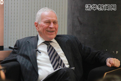 图为埃德蒙•费尔普斯与同学们交流。研通社记者 李晨曦 摄
