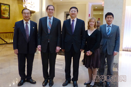 图为陈吉宁校长代表团与普林斯顿大学校长等合影。