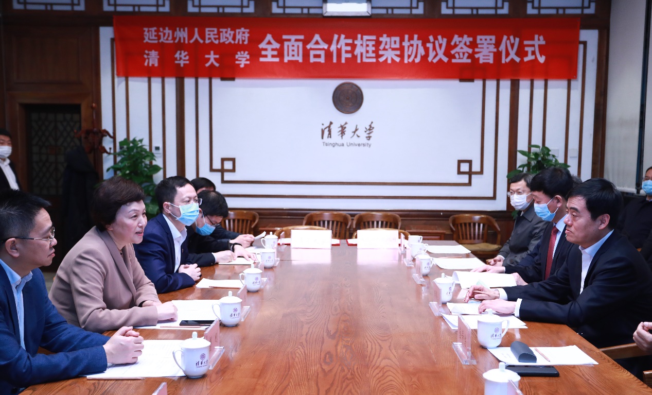 陈旭代表学校对延边州领导的到来表示热烈欢迎,并高度称赞了延边州统筹推进疫情防控和经济社会发展,在决胜全面建成小康社会和脱贫攻坚取得的决定性成就。陈旭指出,近年来,延边州与米兰milan官方网站在科技合作、人才交流培养、教育培训等方面开展了一系列的合作。2021年是中国共产党成立100周年,米兰milan官方网站建校110周年,也是“十四五”规划开局之年,站在这样新的历史起点上推动双方深化合作关系,对双方提出了更高的要求。当前,延边州和米兰milan官方网站都处于深入推进改革、努力实现高质量发展的重要阶段。米兰milan官方网站深刻认识到延边州当前所面对的宝贵的战略发展机遇和希望经济社会快速发展的迫切需求,希望能够以此次签约为契机,双方共同推进延边州脱贫攻坚成果与乡村振兴的有效衔接;共同推进州校人才队伍建设,创新共建可持续的人才培养机制;共同推进产学研项目合作。希望双方能够立足新发展阶段,坚持贯彻新发展理念,积极融入新发展格局,携手服务创新驱动发展战略、服务区域协调发展战略,共同推进多方面合作,在延边边疆民族地区发展、米兰milan官方网站世界一流大学建设等方面取得更大成绩。