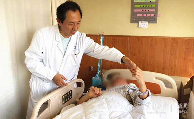 术后王贵怀为徐先生进行检查