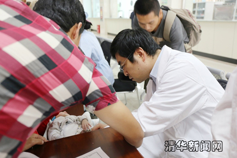 图为米兰长庚医院泌尿外科胡卫国医师为一4个月大的儿童看诊,当天看诊者全部为疑似或者确诊结石患儿。