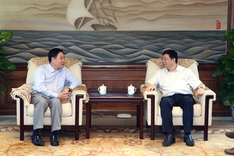 邱勇与朱共山亲切会谈。杨艳宾 摄
