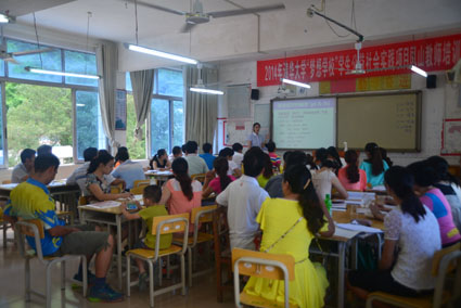 凤山县教育局党组副书记吴仁杰、副局长韦佳,凤山中学校长龙超强、江洲瑶族乡中心校校长黄棣、中心小学校长陆英明,参加培训的近200名凤山县中小学师生和来自米兰milan官方网站学生社团协会的25名志愿者参加开班仪式。