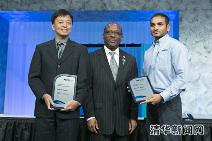 图为黄永恒博士(左)和他的学生Phani K. Peddi(右)领奖。